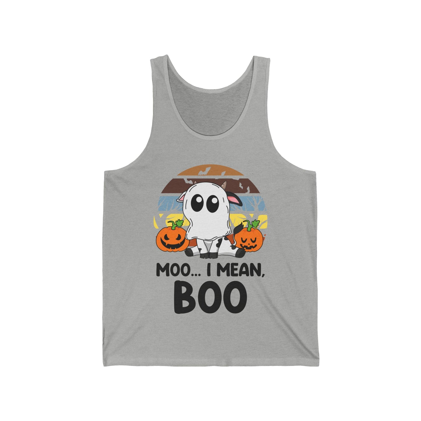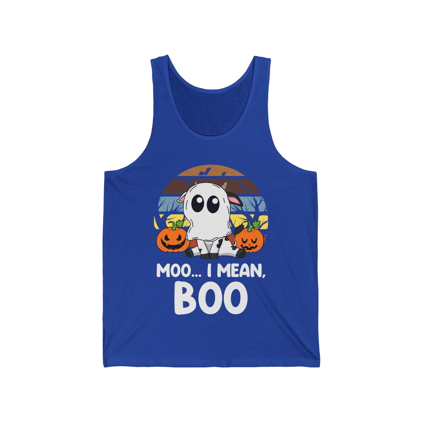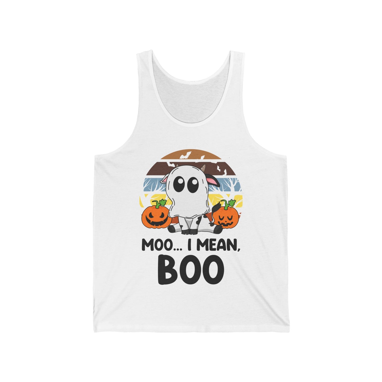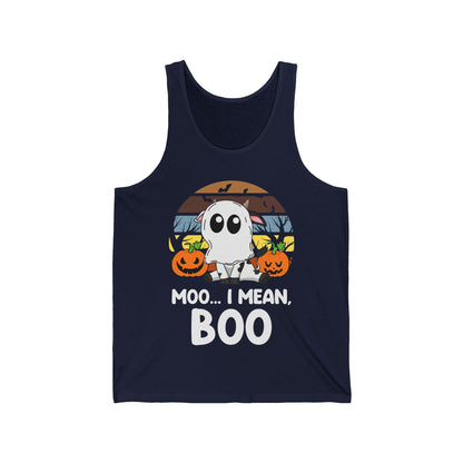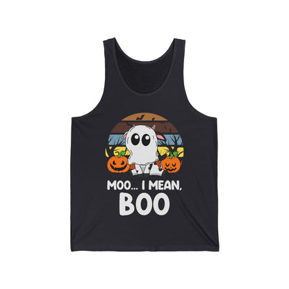 Funny Moo I Mean Boo Halloween Ghost Cow Pumpkin Tank Top Men Women