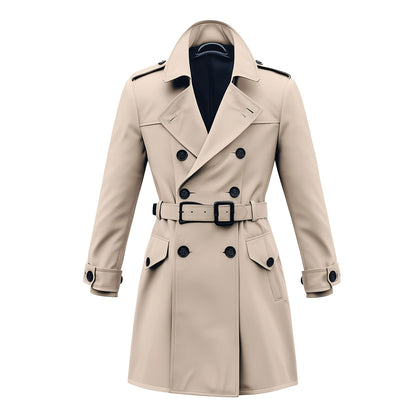 Mens Mini Trench Coat White Knee Length Trench Coats Double Breasted Jacket Storm Flap Lepal Collar Multipockets Water Resistant Jackets For Men