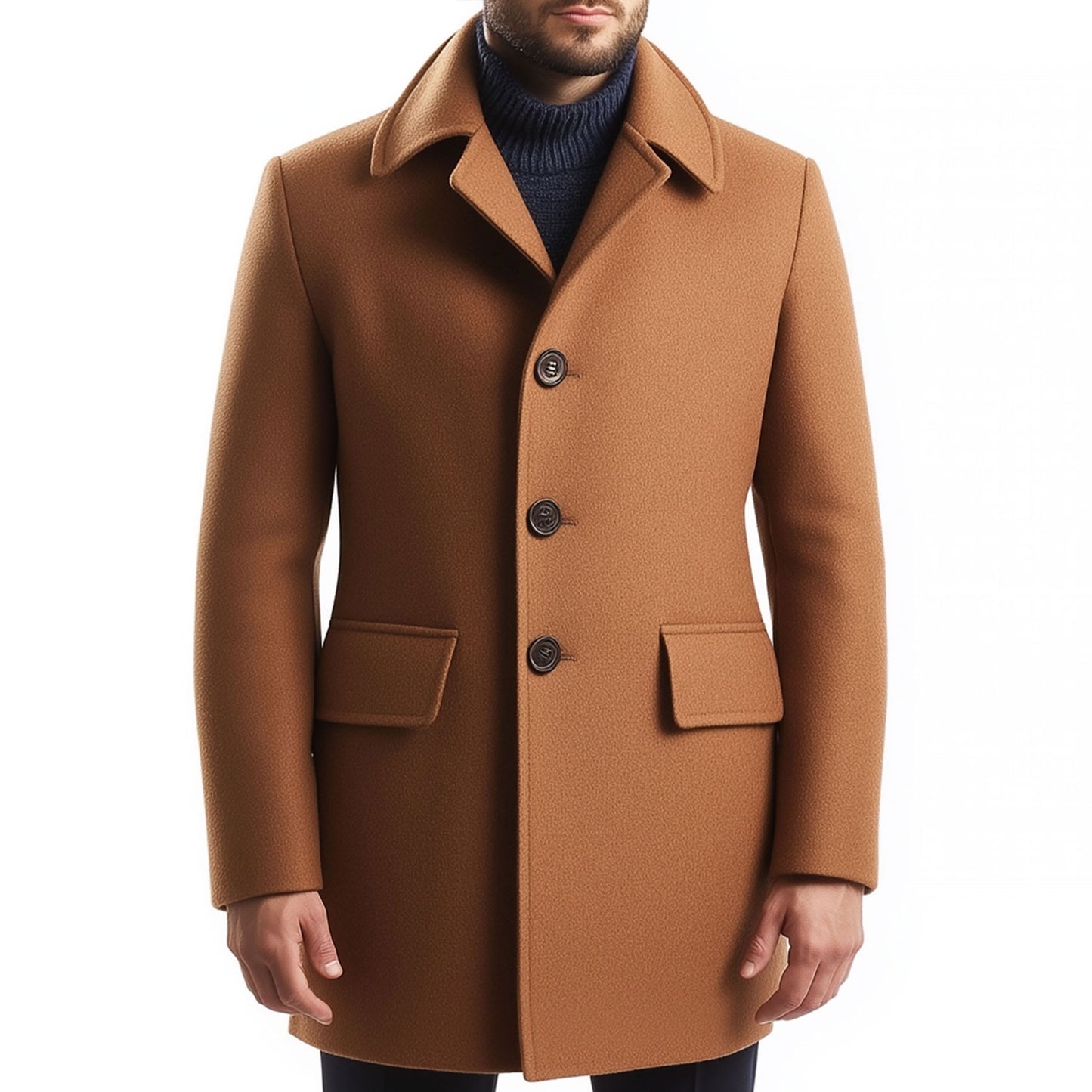 Mens Wool Coat Classic Overcoat Thigh-length Lepal Collar Warm Jacket Versatile Modern Brown Winter Woolen Coat For Men